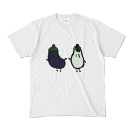 カラーTシャツ - XL - アッシュ (淡色)むらさきナスと白ナスが手を取り合う感動的な場面をTシャツにしたものです。