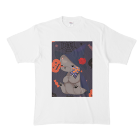 ハロウィン 黒いʕ•ᴥ•ʔクマクマ Tシャツ 白