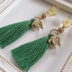 ONEPIECEのサー・クロコダイルをイメージしたモチーフピアス・イヤリングです。 *受注生産になります。 ご購入(受注)→発送までに7日間の期間を設けております。 本体サイズ長さ(カン含む)…73mm タッセルのみ…40mm ①ニッケルフリー フックピアス (12mm×22mm) ※ニッケルフリーではありますがアレルギーを100%予防する保証はありません。 ②樹脂フックピアス (8mm×9mm) ③ネジバネ式イヤリング (18mm×15mm) ④ノンホールピアス(樹脂イヤリング)(ストーン付) (10mm×12mm) 樹脂のイヤリングです。 クリアなストーンが先端についています。 金具の部分は仕入れ状況により色味が変わる場合があります。できるだけ目立たないように同色を選んで使用しています。(黄身がかったゴールドやピンクよりのゴールドなど) 天気や明るさによって全体的な色味が写真と多少異なる場合があります。 ハンドメイド作品なので強く引っ張ったりしてしまうと壊れてしまう場合がございます。 タッセルの束が崩れてしまったらくしなどで軽くといてあげると綺麗に戻ります。