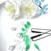 花びらが中心部分の緑から 外側の白へと変わっていく白薔薇 青い花は 花びらの着色に 偏光パールを使用しているので 光の入り方や見る角度によって キラキラと輝きます ワイヤーでパールの花を作り クリアのチェコビーズと 葉っぱをモチーフにした飾りがあります 白薔薇2輪と 青い花4輪 ワイヤーパールの飾り2本を1組とした 髪飾りのセットになります それぞれが単体で使用でるので ちょっとしたお出かけには2~3輪ほど 成人式や結婚式などでは 全ての花々を髪に飾るなど 用途に応じての使い方ができます *白薔薇 5.5cm×5.5cm(Uピン)→ 2輪 *青い花 3cm×3cm(Uピン)→ 4輪 *ワイヤーパールの飾り 4.5cm×6cm *ユーピン 6cm ゚・*:.。.*.:*・゚.:*・゚*゚・*:.。.*.:*・゚.:*・゚*゚・*:.。.*.:*・゚ 1点1点心を込めて作っているハンドメイド作品です。少しずつ個体差があり、世界にひとつだけの作品になっています(❁ᴗ͈ˬᴗ͈) ゚・*:.。.*.:*・゚.:*・゚*゚・*:.。.*.:*・゚.:*・゚*゚・*:.。.*.:*・゚ 〜お願いと注意〜 ◉ワイヤーにディップ液(合成樹脂液)を使用した繊細な作品になっております ◉強い衝撃を与えたり、無理に引っ張ると破損の原因となります ◉画像と実物の色味や質感等、多少異なってしまう場合があります ◉犬(トイプードル)を飼っています アレルギーのある方、気になる方はご遠慮ください ~送料について~ ◉普通郵便(定形外郵便、レターパック、クリックポストのいずれか)にて発送いたします ◉プチプチで梱包し、封筒又は小型の箱になります ◉商品の大きさやお買い上げ点数により梱包、郵送方法は変わります ◉紛失、盗難の際の保障はございませんのでご了承下さい ✴️匿名配送オプション✴️ 匿名配送を希望される方は『匿名配送オプション』も一緒にカートに入れて下さい https://booth.pm/ja/items/2756164