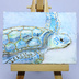 金色で縁どった海亀です 金属光沢なのでどの角度から見ても輝いています。 「気軽に飾れる絵画」というコンセプトで制作しました。 大きな絵を飾れるスペースがなくても、ちょっとした空間があれば簡単に彩りを加えてくれます。 無料でミニイーゼルもお付けします。 A sea turtle with a gold border. Because it has a metallic luster, it shines from any angle. This painting was created with the concept of "a painting that can be easily displayed". Even if you don't have the space to display a large painting, you can easily add color if you have a little space. A free small easel is included. ◇サイズ/size :62mm×90mm ◇水彩、紙/watercolor,,paper
