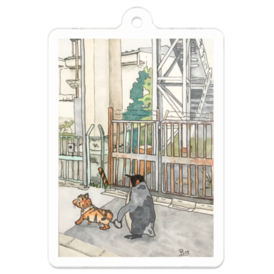 アクリルキーホルダー - 50 x 50 (mm)トラさんとお散歩するペンギンのイラストをアクリルキーホルダーにしました。 この商品はpixivFACTORYで作られた商品です。サンプル画像は完成イメージのため、実物と異なる場合があります。