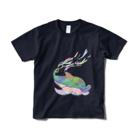 Tシャツ(短納期) - XL - ブラックカラフルなイルカのTシャツです。スポーティに決めよう。 この商品はpixivFACTORYで作られた商品です。サンプル画像は完成イメージのため、実物と異なる場合があります。