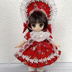 オビツ11サイズのレトロなワンピースセットです。 レトロ感のある柄を活かして文化人形風のデザインに仕上げました。 ※ピコニーモPボディでも着用できます。 ★セット内容★ ・ハーフボンネット(リボンで結ぶ仕様) ・ワンピース(後ろ開きスナップ仕様) 以上2点のセットです。 家庭用ミシンと手縫いを併用して仕上げています。 端処理は主にピケ、一部ロックミシンを使用しています。 身頃部分のみ白色の裏地付きです。100%色移りを防ぐものではありません。色移りが気になる方は長期間の着せ付けはお控え下さい。 袖口はピッタリめですのでハンドパーツを外してのお着替えをお願いします。 その他注意事項はSHOPご利用案内に記載しておりますので、ご一読お願いします。 よろしくお願いします。