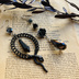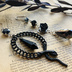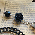 Gothic Wednesday ゴシック 黒蛇 黒薔薇 ブラックガラスドロップ ピアス イヤリング