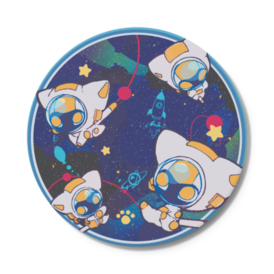 コースター - 円形宇宙を漂うねこちゃんたちのかわいいコースターです!ロケットの外にこんな景色が広がっているのかも...!