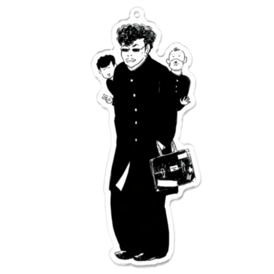 アクリルキーホルダー - 50 x 50 (mm)ツッパリ漫画の名作「ロンタイBABY」のチャッピーこと高取工業高校顔役御茶屋明と手下コンビがアクリルキーホルダーになりました。描き下ろしイラストを使用しています。 この商品はpixivFACTORYで作られた商品です。サンプル画像は完成イメージのため、実物と異なる場合があります。
