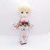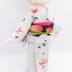 オビツ11向け着物と帯のセットです。 〈着物〉 グレー地に赤い花と蔦の模様です。 ゴムとマジックテープで着せられるようになっています。 ※お品物によって柄の出方が異なりますが、裾と袖のどちらかに大きな花が来るように作ってあります 〈帯〉 黒地に赤や茶の楕円の描かれた抽象的な模様です。 帯締めや帯揚げ、また背中のお太鼓などは全て縫い付けてあります。 背中部分のマジックテープで着せられるようになっています。 ・着物は上下のパーツに別れています ・ミシンと手縫いの併用です。また、補強のため手芸用ボンドも使用して製作しています ・生地は綿100%です(正絹ではありません) 注意 ・ドール用の着物のため、人の着用する着物とは構造が異なります ・ねんどろいどどーるでの着用はできません ・草履、アクセサリーその他撮影小物は商品に含まれません ・補償の点からあんしんboothパックでの発送とさせていただきます ------------ モデル (C)DOLLCE さまの商品 (C)ミニスイーツドール のスノーローズマリーを使用しています。