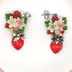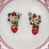 ご覧いただきましてありがとうございます。 樹脂粘土製のパーツとスワロフスキー、リボンチャームを使用しています。 赤い苺のブーケと赤色のスワロフスキー、金具の色味が調和した、とてもきれいなピアスです。 光に当たるとスワロフスキーがキラキラ輝きます(*^^*) ピアス金具はサージカルステンレス製のものを使用しています。 写真ではスタッドピアス(サージカルステンレス)でお仕立てしていますが、お好きなパーツへの変更も承ります。 ご希望のパーツを選択していただきますようお願いいたします。 サフィックス社のスウェットバリアを使用しての金属アレルギー対応も可能です。 ご希望の方は右のメニューより「金属アレルギー対策有」の項目を選んでください。 また、お揃いのブーケを使ったブレスレットとストラップもございます。 こちらもぜひご覧下さいね! 3連ストラップ→https://sakurablossoms.booth.pm/items/3038459 1連ストラップ→https://sakurablossoms.booth.pm/items/2983406 ※注意※ ☆お花のパーツは樹脂粘土でできています。強い力や水濡れに弱いので、充分ご注意くださいませ。 ☆定形外郵便でのお届けのみとなります。 【Size】 ・ブーケ:約2.1cm×1.6cm ・スワロフスキー(ハート):1cm×1cm ・リボンチャーム:7mm×8mm