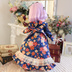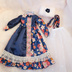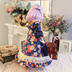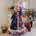 【MDD(S胸)サイズ】和洋ネイビーのモダンワンピース3点セット(パニエ、もふもふケープ、ウエストリボン付き)