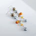 とても大人っぽいグリーン色っぽいメタリックグレー染めの淡水パールにぷっくり可愛いマーブル模様のようなキャラメルとライトグレーの2色のしずくビーズにラメ光るオリーブ色のシャイニーパールなどを合わせたお洒落な揺れるタイプの作品となっております☆ メインのお色は秋の緑をイメージしたちょっぴりくすんだグリーンとトパーズの2色、シルバー金具を合わせて大人っぽい色合いにまとめました☆ かなりロングサイズ(約7cm)の作品となっておりますので、揺れ感があるデザインがお好きな方やエメラルドグリーン色がお好きな方に特におすすめの作品となっております☆ アレルギー対応のピアスやイヤリングへの変更についてはご注文時にオプションよりご希望金具をお選び下さい *淡水パールの色合いは女性の肌に良く馴染みに高貴さを与えてくれると言われています。美しさや高貴さには低次元のものや不純なものを寄せ付けない強さが宿ると言われていることからお守りとして身に着けるのも良いと思います☺ 淡水パールは他にも… *心や生活に余裕を作る *エネルギーを奪うものから守る *感情を受け取り、昇華させる *持久力や忍耐力を養う などの効果もあると言われています。 ※こんな方におすすめ♪ *大切な方へのプレゼントに *揺れ感があるロングサイズの作品がお好きな方に *淡水パールがお好きな方に *落ち着いた色合いがお好きな方に ☆シャイニーパール(メタリック) オリーブ ラウンド型 8mm ☆しずく型チェコビーズ キャラメルトフィ コンビ 9x6mm ☆しずく型チェコビーズ ライトグレー 7×5mm ☆淡水パール(天然石) バロック メタリックグレー染め 6~7cm程 ☆チェコビーズ トパーズ ボタンカット 4mm ☆スペーサー シルバー ☆9ピン ☆Tピン ☆丸カン ☆ピアス用金具(フック式☆シルバー) 長さは約7cmとなっております。(1cm程のピアス金具を含む)