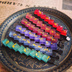 「きらきら小さな甘い結晶をタイルのように仕立てて髪飾りにしました。どんな味が思い浮かびますか?3時のおやつにはなりませんがお菓子を食べた時のようにほっと幸せになれるかもしれないです。」 ヘアピン本体の部分がしっかりとした太めのものを使用しているのでがっつり髪の毛が止まります。ヘアピン本体は黒です。 しっかりしたヘアピンなので一本でも存在感が結構あります。 大きさと色の番号は3枚目以降の画像をご参照ください。5mmマスです。 番号は①~⑥まであります。 お気をつけください。 ハンドメイドのアクセサリーです。 破損の原因になりますので強い衝撃などにはお気をつけください。 またレジンを使用した作品になります。 アルコールで曇ってしまうことがあるのでお手入れの際などお気をつけください。 UVカットのコーティングはしてありますが紫外線に弱いので保管などは長期間陽に当たることがないようにお願いします。 発送は定形外郵便です。 それ以外をご希望の方はご相談ください。
