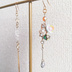 雪代水(ゆきしろみず) 【意味】……雪解け水の別名。 春が近づき、花につもった雪が日に照らされて溶けていく様子をイメージして作りました。 ・長さ 9センチ ・重さ 6グラム ・水晶のさざれいしを氷に見立てました! ・ドロップ型のビーズは光の加減でピンク色に変化します。冬から春へ向かうような淡い色です。 ・イヤリングは耳が痛くなりにくいゴムパッキンつき! (不要な場合はメッセージにてご希望ください。)