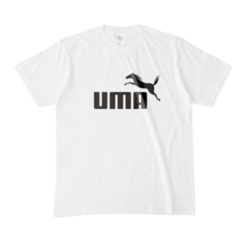 Tシャツ - XL - 白この商品はpixivFACTORYで作られた商品です。サンプル画像は完成イメージのため、実物と異なる場合があります。 躍動感あふれるサラブレッドとUMAの文字を組み合わせた、シンプルで力強いデザインのロゴマークです