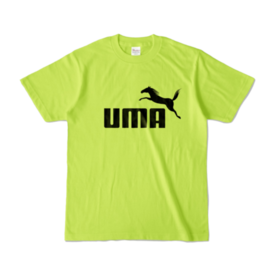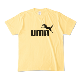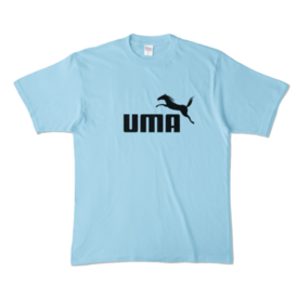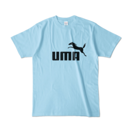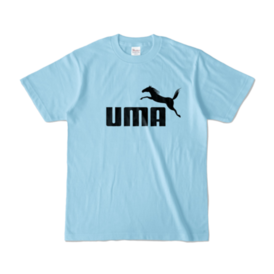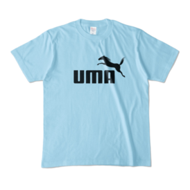 カラーTシャツ - XL - ライトブルー (淡色)この商品はpixivFACTORYで作られた商品です。サンプル画像は完成イメージのため、実物と異なる場合があります。 躍動感あふれるサラブレッドとUMAの文字を組み合わせた、シンプルで力強いデザインのロゴマークです