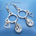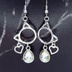 アンティークシルバー 猫フレームとガラスクリスタルを組合せたピアス ハート サージカル可
