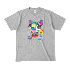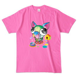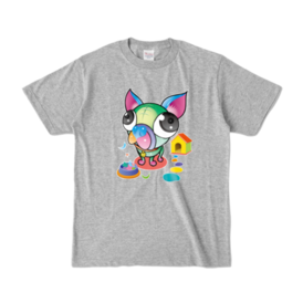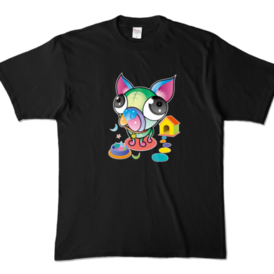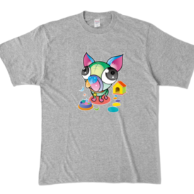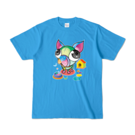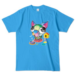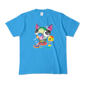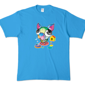 カラーTシャツ - XL - ターコイズ (濃色)この商品はpixivFACTORYで作られた商品です。サンプル画像は完成イメージのため、実物と異なる場合があります。 デザイン化された、カラフルな色使いのチワワのイラストです