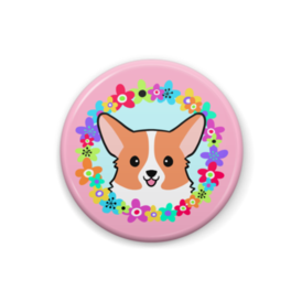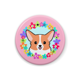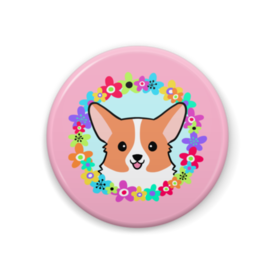 コーギー缶バッジ フラワーリース