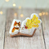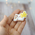 絵本ブローチ《ミモザの花束くれたミケ》【手描きイラスト・陶土ブローチ】