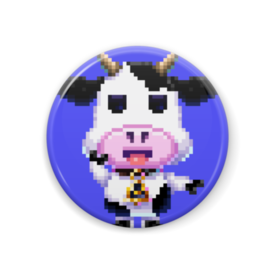 缶バッジ - 88mm悪夢魔軍団メンバー『悠然を司る牛の様で地球外生命体』ユトのドット缶バッチシリーズです。 カラーリングはそれぞれ、 25㎜『黒』 44㎜『青』 88㎜『茶』 となっております。 尚、外部加入組所属であり、本人からの販売許可を頂いております。
