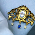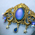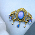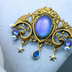チェコヴィンテージガラスのブローチ ブルーバイオレット ゴールド金具