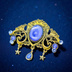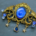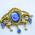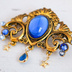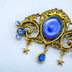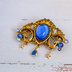 チェコヴィンテージガラスのブローチ サファイアブルー ゴールド金具