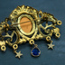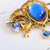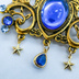 https://manage.booth.pm/items/5481608/edit 上記の作品の配色をまったく同じ ゴールド金具バージョンです。 宝石のサファイアを思い出させるような 透き通るブルーのチェコガラスを使ったブローチです。 深い水の底を思わせるような、透き通るようなブルー。 サイドに配置したクリスタルガラスも、 同系色のサファイアブルーとアクアマリンの優しい空色を合わせました。 ブルーのトーンでまとめられた、清涼感の感じられる作品です。 洋服の襟元に着けていただいたり、 マフラーやストール等の留め具としてもお使いいただけます。 ブローチの針にピアスの樹脂キャッチを つけています。 着けたい場所に針を通していただいて、 その後キャッチを通していただくと 落下防止になります。 。:*:★━━━━━━━━━━━━━━━━★:*:。 ◆◆おおきさ&カラーなど◆◆ チェコガラスカボション サファイアブルー 18mm×13mm 台座の大きさ 6cm×4.8cm 金具の色:ゴールド 装飾のクリスタルガラス:5mmサイズ サファイア 3mmサイズ アクアマリン 雫型のチャーム:ゴールド金具 サファイアブルー 12mm (カン部分を含む) 星型のチャーム:ゴールド金具 7mm