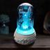 天然石を使って作られたランプです。 水色のイメージ。澄んだ。爽やかな。クリアな。清々しい。空と海と水。アクアマリン。 メインに水晶を使っております。 アクアマリンは3月の誕生石でもあります。 鉱物標本として飾るもよし。水晶の結晶は明かりをつけるとまた違った表情を見せます。 点灯色をリモコンで切り替えられます。 明るさを調整できます。 13色のカラーボタン:対応した色に点灯します。 SMOOTH:13色で滑らかな切り替え点灯 FLASH:13色で点滅しながら切り替え点灯 30MIN:30分のタイマー 60MIN:60分のタイマー 動力:単4電池。底のふたをあけると電池があります。 本体:単4電池×3(ついています) リモコン:CR2025ボタン電池(ついています) 直径:8.5cm 高さ:14cm 素材:水晶、アクアマリン、ドライフラワー、樹脂粘土、プラスチック製ドーム、LEDライト