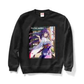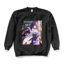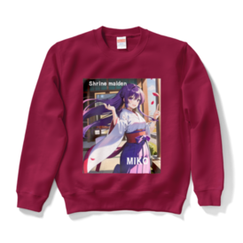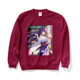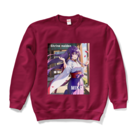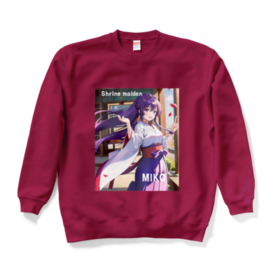 スウェット - XL - バーガンディこの商品はpixivFACTORYで作られた商品です。サンプル画像は完成イメージのため、実物と異なる場合があります。 AIイラストで作成した、デザインです。 神社の巫女様を可愛いく、デザインしました。