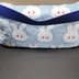 マイクロファイバータオルポリエステル生地100%水色。うさぎ柄。手縫い製法。木製4個.ループ付き。柔らかベルト紺色付き。低反発ミニクッション素材。 縦15cm×横25cm×高さ8cm。 御手入れ方法…ボタンをループから外してタオル生地と低反発クッション素材を別けます。タオル生地だけをぬるま湯で手洗いします。漂白剤を使うと色落ちします。形を整えて平干し乾燥後ベルトにタオル生地を通してクッション素材を包みボタンで止めます。形を整えてから使用出来ます。 毎日の休憩時間、仮眠時間、お子様のお昼寝時間をフワフワミニ枕で癒やされます。スマホ時間、パソコン時間の肘置きにも使用出来ます。うさぎ好きな方へのプレゼントにも…