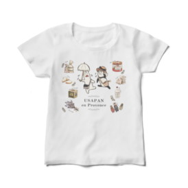 LサイズうさぱんとプロヴァンスシリーズのレディースTシャツです。 アーティストゆうしゃんぬが描く、ペンと水彩画の独特のタッチで表現された「うさぱん」キャラクターと、プロヴァンスのお土産のイラストが融合したシリーズのレディースTシャツです。 日常に、プロヴァンスの風を感じられる、特別な一枚をぜひお手に取ってみてください。 この商品はpixivFACTORYで作られた商品です。サンプル画像は完成イメージのため、実物と異なる場合があります。