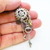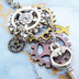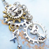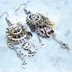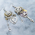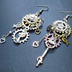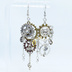 アンティークシルバー 猫と歯車のスチームパンク風の多層的アシンメトリーピアス サージカル可