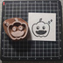 1.オバケかぼちゃ 印面の大きさ:W 約26mm, H 約23mm はんこ自体の大きさ:W 約30mm, H 約27mm 分厚さ:約1cm 2.おばけ 印面の大きさ:W 約25mm, H 約21mm はんこ自体の大きさ:W 約30mm, H 約23mm 分厚さ:約1cm 3.おばけとこうもり 印面の大きさ:W 約30mm, H 約20mm はんこ自体の大きさ:W 約35mm, H 約23mm 分厚さ:約1cm 4.キャンディとチョコレート 印面の大きさ:W 約27mm, H 約26mm はんこ自体の大きさ:W 約28mm, H 約30mm 分厚さ:約1cm 5.Happy Halloween!! 徒歩ねことフープくん 印面の大きさ:W 約58mm, H 約31mm はんこ自体の大きさ:W 約62mm, H 約35mm 分厚さ:約1cm