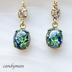 【送料込み】緑のヴィンテージグリーンファイアオパール風ガラスとスワロフスキーの宇宙ピアス