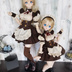 各パーツ独立して製作しておりますので色々アレンジして着用頂けます アレンジ着装の画像も載せてありますが、セット内容は下記のとおりです 【セット内容】 (1)オープンバストベスト (2)胸当て (3)付け襟 (4)スカート (5)アンダースカート (6)エプロン (7)付け袖 (8)カフス (9)ヘッドドレス (10)後ろリボン 【1・オープンバストベスト】 後ろマジックテープ開閉。見頃のみ裏地付き。 胸元の大きく開いた上着です。 【2・胸当て】 ③付け襟・⑥エプロンをマジックテープで取り付けれますのでお好みでアレンジして下さい。胸元に飾りがある方が前です。 ◆胸元ビーズについての御注意◆ 色見優先の為材料入荷時期により《ラウンドビーズ仕様》《ラウンドカットビーズ仕様》どちらかの仕様になります、ご了承下さい 【3・付け襟】 後ろスナップ止め。 ②胸当てにマジックテープで取り付けれます。 【4・スカート】 後ろマジックテープ開閉。⑥エプロンをマジックテープで取り付けれます。 【5・アンダースカート】 ウエストゴム仕様。 【6・エプロン】 ②胸当て・④スカートにマジックテープで取り付けれます。お好みで取り外しして下さい。 【7・付け袖】 ハンドパーツを外して着用下さい。 【8・カフス】 ハンドパーツを外して着用下さい。 【9・ヘッドドレス】 針金入りですので頭の形に整えて着用ください 【10・後ろリボン】 安全ピン仕様。後ろウエストに付けて下さい ※自宅で48時間のパッチテストをクリアした素材を使用し制作しておりますが、オビツ・DDボディーは素体の特性上色移りにご注意ください。 ※ソックス・星屑のショーツ(レースショーツ)・星屑のブラ(レースのブラ)は別売りです。