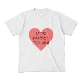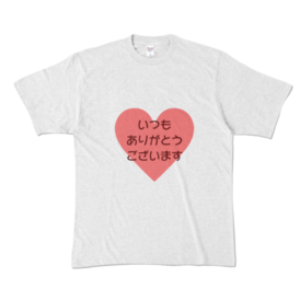 カラーTシャツ - XL - アッシュ (淡色)普段お世話になっている身近な人へ、日頃の感謝の気持ちを伝えたいけど、 中々言葉で伝えにくい時に‥これを着て、目に留めて貰うことでさりげなく伝えたい。 そんな方のために作ってみました。 感謝系の記念日、母の日、父の日、ご近所の方、ゴミ収集業者さん、コンビニやお店の店員さん、先生… 自分用にも、プレゼント用にも、いかがでしょうか♪ サイズは4種より選べます。 ※この商品はpixivFACTORYで作られた商品です。サンプル画像は完成イメージのため、実物と異なる場合があります。