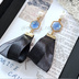 青い六角形×黒リボンタッセルの耳飾り