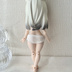 不可食用人偶 「月飛び時間」シリーズのボディ形状に合わせて制作しています。 他のブラインドドール・一般的なドール素体にはサイズが合いません。 互換性はありませんのでご注意ください。 デフォルトのお洋服の邪魔をしないよう、シンプルに仕上げました。 短めのスカートの裾から見えずにお尻をふわっと包みます。 ぴったりめのフィット感です。 着せつける際にはゆっくりとお尻のパーツの段差を越えるようにしてください。 綿ジャージ生地ですがあまり伸びません。無理に引っ張ると破れたりほつれる原因になりますのでご注意ください。 ※ 本商品は個人が制作した非公式のハンドメイド品です。 ドール本体・公式衣装・パーツの複製ではありません。