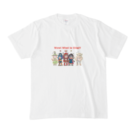 Tシャツ - XL - 白この商品はpixivFACTORYで作られた商品です。サンプル画像は完成イメージのため、実物と異なる場合があります。 勇者たちの街での聞き込み中に起きた出来事!街の人と最後尾の魔法使いチャンが消えちゃった・・!?事件かな!!魔王の仕業かな??💦 ・・なシーンをTシャツにしました♪