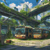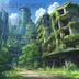 【155枚】ディストピア 植物支配都市~緑に呑まれた街~ 背景イラスト【著作権フリー素材】終末世界風景