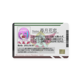 プラスチックカード - 会員証(85.6 × 54mm)レヴェリズム連合のメンバーカードができたよー!これで今日から貴方もRIUの一員だ!是非とも手に入れて……あれ、これ私の個人用カードじゃね…?情報漏洩!情報漏洩!!!!