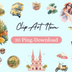 ベトナム・ホーチミン女子旅シリーズ クリップアート 全20種(PNG/背景透過) ベトナム・ホーチミンをテーマにした、淡い水彩画色調・アンティーク調・イエローとブルー基調 のクリップアートセットです。 街並みや歴史的建物、女子旅に欠かせない小物やグルメを中心に、全20種類を収録しました。 都会的で明るい雰囲気を水彩画タッチで柔らかく表現しています。 ✨ セット内容(全20種) 1・中央郵便局 2・サイゴン大教会(ピンク&イエロー基調) 3・ベトナム伝統雑貨(竹かごや陶器) 4・バインセオ(ベトナム風お好み焼き) 5・南国フルーツ(マンゴー、ドラゴンフルーツなど) 6・街角のバイク 7・プルメリアやヤシの木など南国植物 8・市場を散策する女性旅人 9・飛行機 10・アンティーク調旅行用スーツケース 11・二階建てバス 12・ベトナムフォー 13・蓮の花 14・アオザイを着ている旅行好きな3人組女性 15・観光中の旅行好きな3人組女性 16・ベトナムローカル市場の風景 17・ノンラー 18・カゴバッグ 19・ベトナムコーヒー 20・ココナッツ 📂 ファイル形式 PNG(背景透過) 🎨 ご利用シーン(例) ブログ・SNS:女子旅レポート、旅行記、ホーチミン観光記事の挿絵に。 デザイン制作:ポスター、フライヤー、旅イベントの告知素材に。 スクラップブック・アルバム:旅行写真に合わせたデコレーションに。 ジャーナル・手帳デコ:旅のログや日記、バレットジャーナルの装飾に。 教材・プレゼン:ベトナム文化や観光を紹介する資料のイラストに。 ショップデザイン:旅行グッズ、アジアン雑貨の販促や商品POPに。 デジタルコンテンツ:電子書籍やPDF旅行ガイドのアクセントに。 ホーチミン旅行の華やかさや南国の雰囲気を表現した、やさしい水彩タッチのクリップアートです。 旅の思い出を彩り、デザイン制作にエキゾチックなアクセントを加えたい方におすすめです。