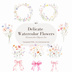 可憐な水彩フラワー&リボン・リース イラスト素材集