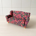 見た目は1/12スケールのミニチュア家具のソファですが、座面が蓋になっていて物を入れられる仕組みになっています。また、蓋は両面使えるようになっていて、片方はドールなどを座らせた時に安定するように後ろが平面になっています。 ドールハウスに並べてインテリアを楽しんだり、お気に入りの誰かを座らせたり、座らせた上で何かをこっそり仕舞ったり、色々な使い方をしていただけます。 販売しているソファは全て柄と形の組み合わせが異なる一点ものです。 形は1人掛けと2人掛けがあります。ぜひお気に入りを見つけてみてください。 Yon.のアイテムは全て販売什器、撮影小道具としての使用OKですので、インテリアにもディスプレイにもおすすめです! ※お届け日時にご希望がある場合、ご質問などがある場合はご注文の前にお問い合わせをお願いいたします。 高さ72×幅143×奥行60mm (最長部分)