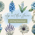 水彩タッチで描いた、水色の花シリーズのクリップアートセットです。