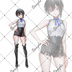 立ち絵素材No13_黒髪_アシメ_ノースリーブ_ショートパンツ_女性