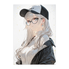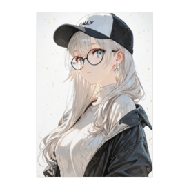 この商品はpixivFACTORYで作られた商品です。サンプル画像は完成イメージのため、実物と異なる場合があります。 白と黒のコントラストが印象的な、静かな午後のポートレート。キャップとメガネが知的な雰囲気を演出する、都会的な女の子のワンシーンです。落ち着いた色調の中に光が差し込む、日常の美しさを感じる作品。