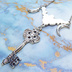 アンティークシルバー カギと三日月のゴシック調ペンダントネックレス アジャスター可