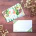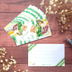 水彩で描いたイラストを使用したメッセージカードです。 名刺サイズでたっぷり10枚入り。 文字を書く面には緑のレースにホイップクリームを乗せて、 裏面には抹茶アイスに白玉と栗の甘露煮、つぶあんにソフトクリームがトッピングされた抹茶パフェを置き、 グリーンのストライプを背景に入れました。 思わず抹茶パフェが食べたくなるような甘いデザインになっております。 「KUMACHAN」のくま型ウエハースのトッピングがポイントです♪ 一言メッセージを書いて添えるのに丁度良いサイズです。 マシュマロCoCという用紙で、筆記性に優れたサラサラとした触り心地です。 印刷部分は控えめに光沢があります。 「FSC森林認証」を取得した環境に優しい用紙です。 ・。*・。*・。*・。*・。*・。*・。*・。*・。*・。*・。*・。*・。*・。*・。* ◯サイズ:名刺サイズ(縦55×横91㎜)10枚入 ◯素材:マシュマロCoC 両面フルカラー #ストライプ #抹茶 #白玉 #あずき #ウエハース #くま