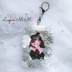 【チェキケース】グレー×クリア ホイップデコ 硬質チェキケース フォト キーホルダー バッグチャーム リボン 花 カード ケース